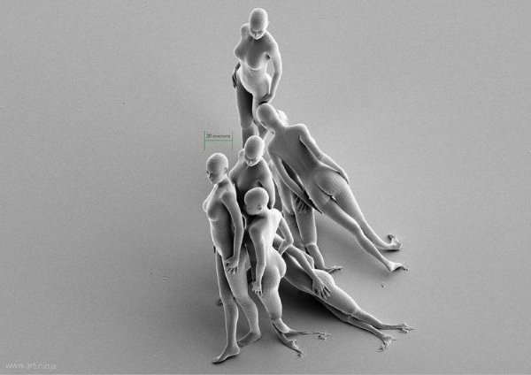 Как известно, нанотехнологии прошлого позволяли создавать самые миниатюрные книги и даже подковывать блох. Но сегодня технологические возможности куда серьёзнее. Как насчёт создания миниатюрных скульптур прямо на человеческой коже? Невероятно? А художник Джонти Гурвиц так не считает. Он создал уже несколько таких статуй и охотно представляет как сами произведения, так и свои комментарии.
