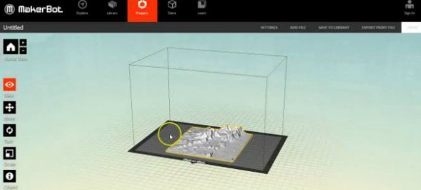 В ThatcherC нужно выбрать участок карты и вручную задать его площадь. Затем карта экспортируется в STL-файл и отправляется в принтер.