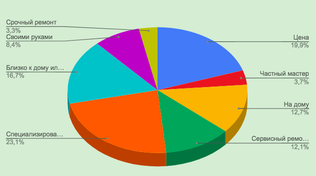 На втором месте по популярности расположился формат поиска сервиса, который предлагает наиболее выгодные финансовые условия. Вопрос цены важен для 19,9% владельцев сломанной техники.