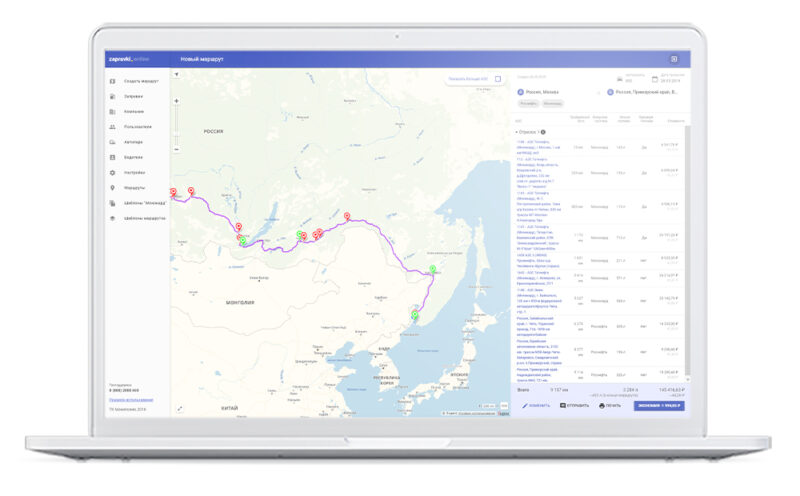Далее система рассчитывает максимально эффективный маршрут с указанием нужных заправок по пути и отсылает его водителю.