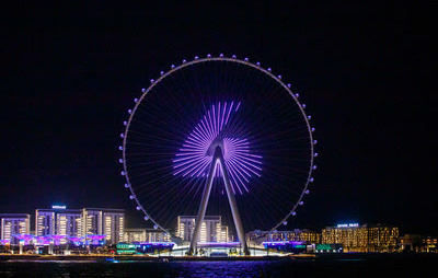 Ain Dubai — крупнейшее и самое высокое в мире колесо обозрения, верхняя точка которого находится на высоте более 250 метров. Это непревзойденное монументальное сооружение предлагает посетителям получить невиданные и незабываемые впечатления, отмечая личные и праздничные события, а также насладиться панорамными видами Дубая в максимально комфортной обстановке — и все это в самом центре острова Bluewaters, изысканного и обязательного для посещения места. 48 пассажирских кабин, установленных по окружности огромного колеса, могут одновременно вмещать более 1750 посетителей.
