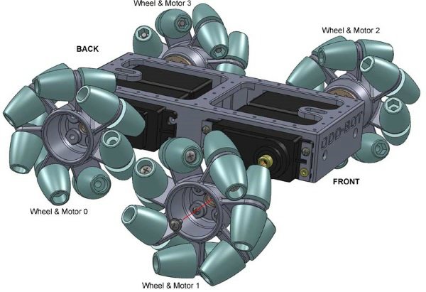 Данный робот имеет открытый исходный код, а самой главной его особенностью являются его колеса, способные вращаться в разных направлениях, известные как колеса Илона. Изобретение 1973 года шведского инженера Бенгта Илона представляет собой колесо с угловыми роликами вокруг своей периферии, которые позволяют передвижному средству двигаться в сторону без необходимости изменения угла поворота колеса. В этом случае переднее колесо вращается в одном направлении, а заднее – в противоположном. Так осуществится боковое движение.