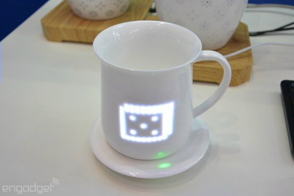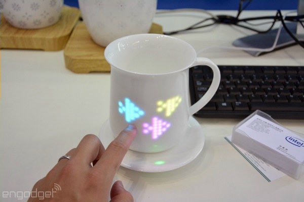 Даже сегодня фарфор остаётся одной из первых ассоциаций с Китаем (по-английски фарфор и Китай даже носят одно название China). Производитель установил в свои фарфоровые изделия миниатюрный «умный» модуль Edison, разработанный корпорацией Intel. Более того, благодаря прозрачности фарфора получилось и установить туда дисплей. Правда, его разрешение всего 12х16 пикселей, зато он работает, а к тому же – сенсорный!