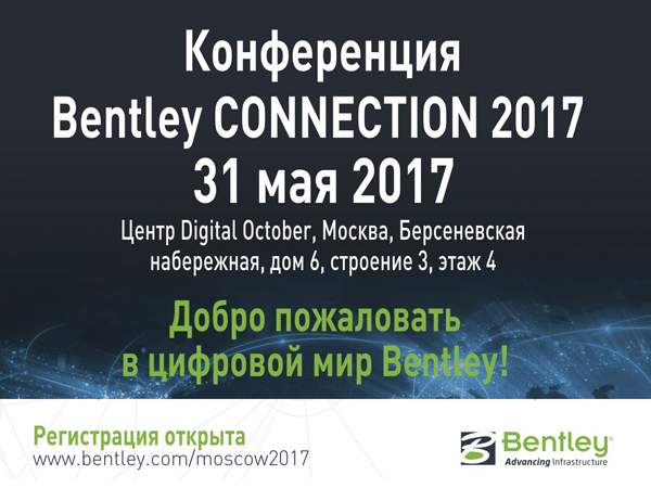 31 мая в Москве пройдет конференция Bentley Connection 2017, являющаяся одним из самых значимых форумов в области обмена знаниями и опытом реализации сложных инфраструктурных проектов в России и СНГ.