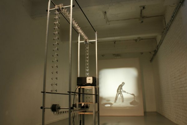 Удивительно, но новаторские 3D-технологии здесь напоминают старинный театр теней, выведенный на новый уровень. Экспозиция получила название «Рельеф» и представляет собой анимационный ролик о человеке, роющем в земле яму. Перед проектором одна за другой появляются настоящие трёхмерные фигурки, напечатанные методом стереолитографии (SLA). Проектор, с которого картинка выводится на экран, чем-то напоминает кинопроекционные устройства 20-х годов. С его помощью фильм проецируется прямо на стену, качество изображения при этом оказывается потрясающим.