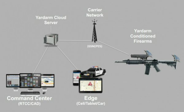 Датчик, разработанный стартапом Yardarm, размещается непосредственно на оружии и соединяется со смартфоном полицейского по Bluetooth. Пока полицейский находится при исполнении, его оружие через устройство слежения мониторится удалённо.
